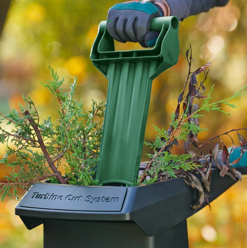 Broyage rapide et efficace de branches et déchets de jardin grâce au système de coupe à turbine.