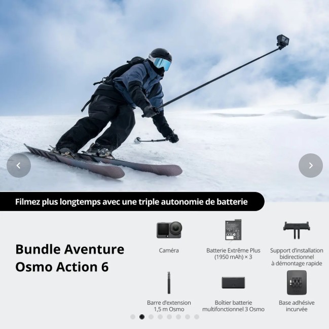 L’autonomie de la DJI Osmo Action 6 figure aussi parmi ses principaux points forts. Équipée d’une batterie de 1950 mAh, elle peut tenir jusqu’à 4 heures d’enregistrement